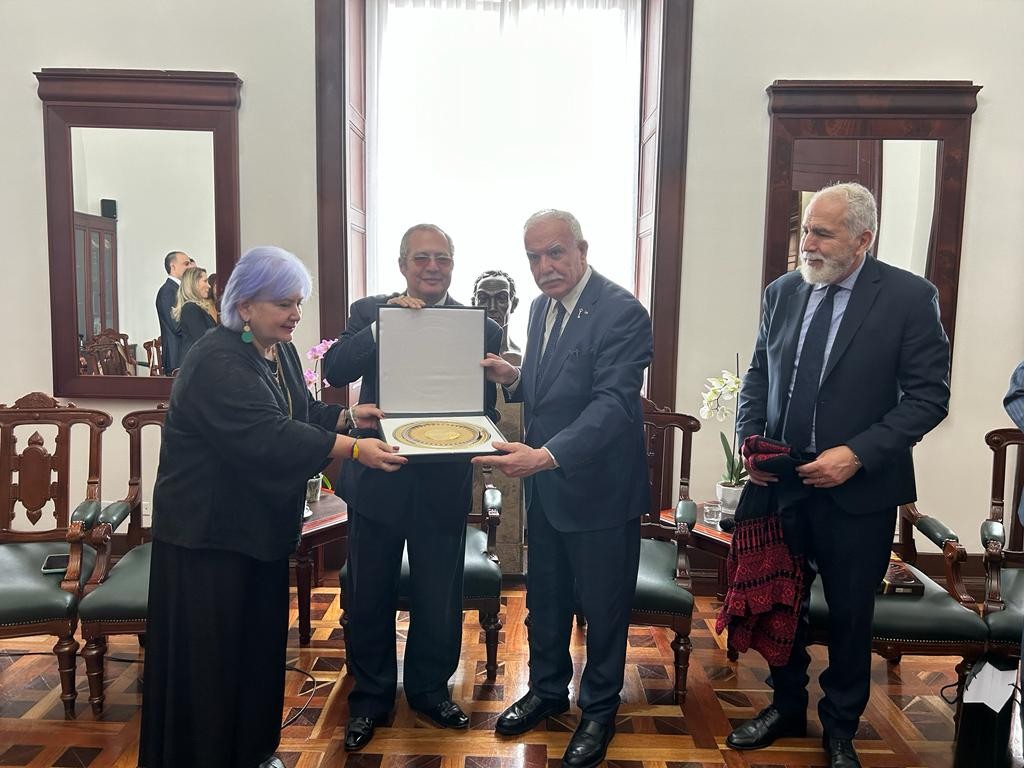 وفي بداية اللقاء، رحبت النائب غلوريا فلوريس، بالوزير المالكي والوفد المرافق له، معربة عن دعم كولومبيا وتضامنها مع القضية الفلسطينية.