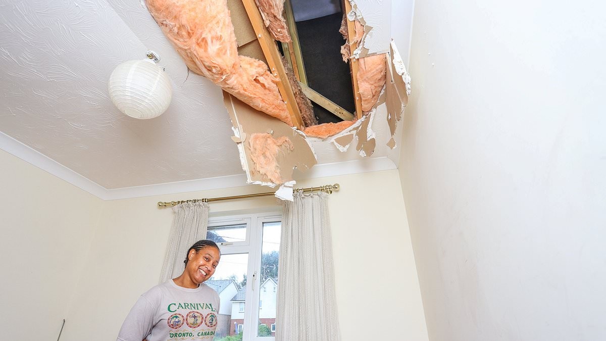 وأشارت إلى أن أحد رجال الإطفاء أخبرها أن السبب على الأرجح هو سقوط الجليد من طائرة كانت في طريقها إلى مطار هيثرو، فيما تم عرض مبلغ 12000 جنيه إسترليني عليها لإصلاح السقف، والذي سيغطيه تأمين منزلها.