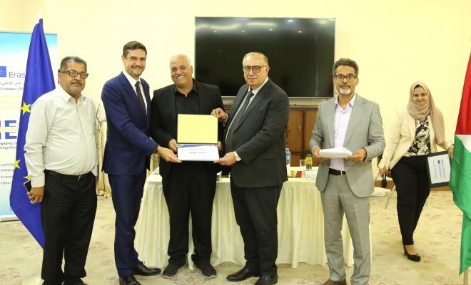 وأشار إلى أنه ومن خلال هذه المشاريع ستبدأ الجامعات الفلسطينية ومؤسسات القطاع الخاص بإقامة شراكات إقليمية والحفاظ عليها مع الأردن ولبنان، وشراكات مع جامعات أوروبية، مشيداً بمكتب إيراسموس الوطني وما قدّمه من دعم وتوجيه لفرق المشروع في شطري الوطن، شاكراً في الوقت ذاته الاتحاد الأوروبي على متابعته المستمرة وتعاونه وتنسيقه مع موظفي الوزارة ومكتب إيراسموس.