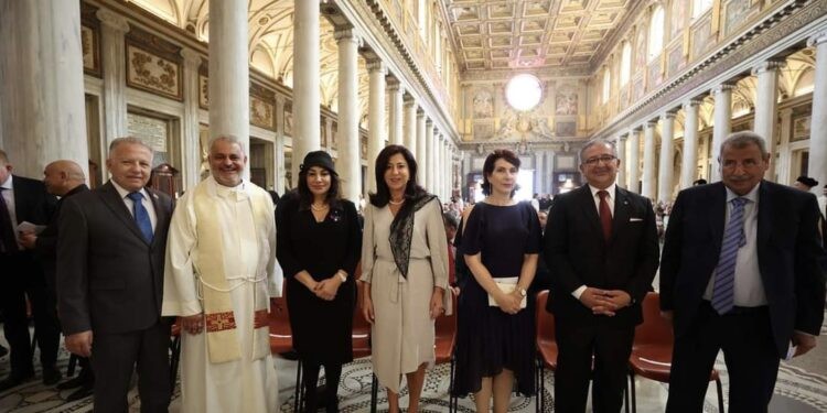 وجاء ذلك، بحضور عضو اللجنة الرئاسية سفير فلسطين لدى حاضرة الڤاتيكان عيسى قسيسية، وسفيرة فلسطين لدى إيطاليا عبير عودة، وحشد من المؤمنين من داخل الوطن والجاليات الفلسطينية في أوروبا، وذلك في بازيليكا القديسة مريم الكبرى في روما.