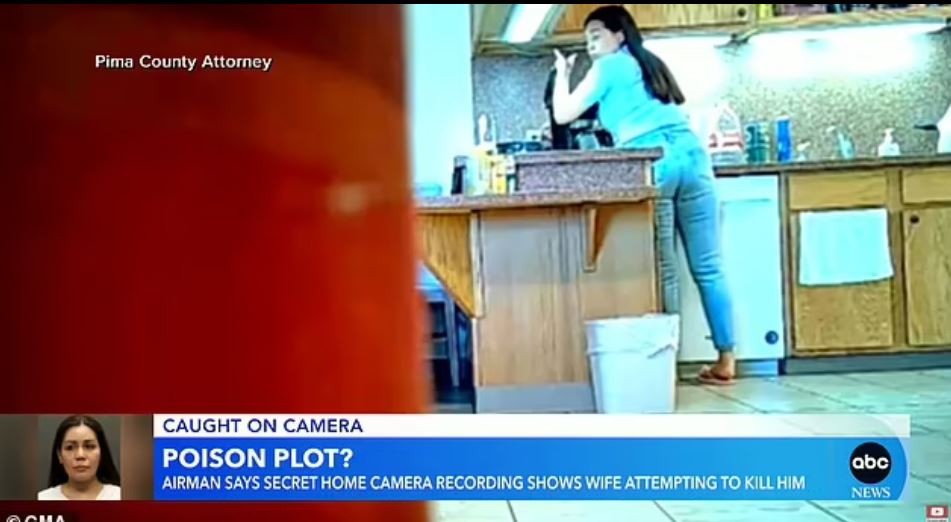 أظهرت لقطات جديدة صادمة تم تصويرها سرا داخل منزل في ولاية أريزونا، زوجة أحد موظفي القوات الجوية الأمريكية وهي تصب مرارا وتكرارا سائلا يقول إنه مبيض في ماكينة القهوة، فيما يزعم أنها محاولة لقتله.