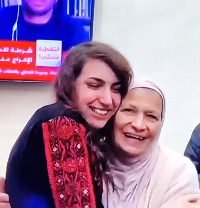 وتداول نشاء فلسطينيون مقاطع فيديو للم شمل الأسرة حماد مع عائلتها بعد عامين من السجن.