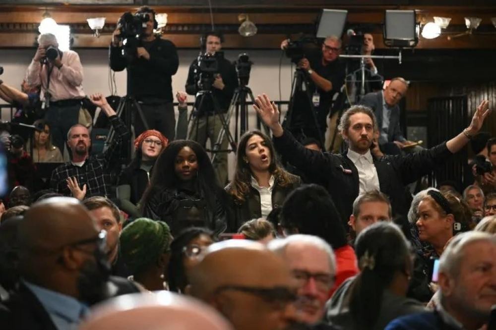 وهتف العديد من الحضور "نطالب بوقف إطلاق النار الآن"، بينما صاح أحدهم قائلا "إذا كنتم تهتمون حقًا بالأرواح التي فقدت هنا، فعليكم تكريمها والدعوة إلى وقف إطلاق النار في فلسطين".