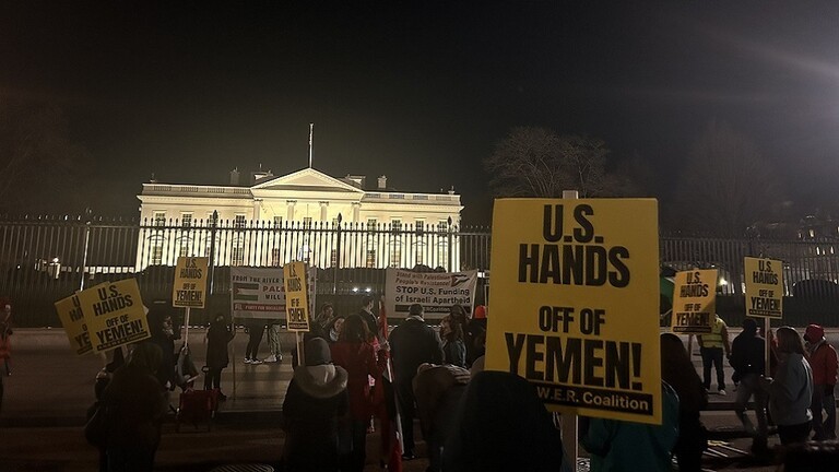 نظم متظاهرون غاضبون من الضربات الجوية التي شنها الجيش الأمريكي على أنحاء اليمن فعالية احتجاجية أمام البيت الأبيض في واشنطن، حسبما ذكرت وسائل إعلام أمريكية.