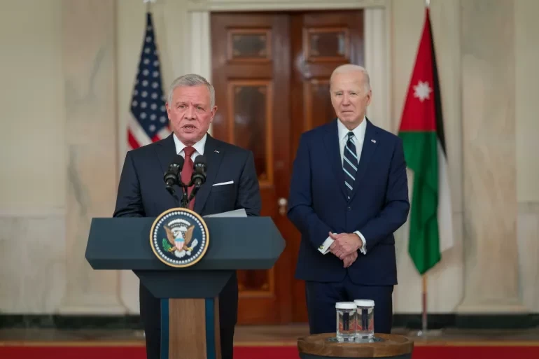 من جهته، قال البيت الأبيض في بيان إن الرئيس وملك الأردن ناقشا أهمية الاستقرار بالضفة والشرق الأوسط على نطاق أوسع، مضيفا أن بايدن أكد خلال اللقاء أهمية الحفاظ على الوضع الراهن في الحرم القدسي الشريف.