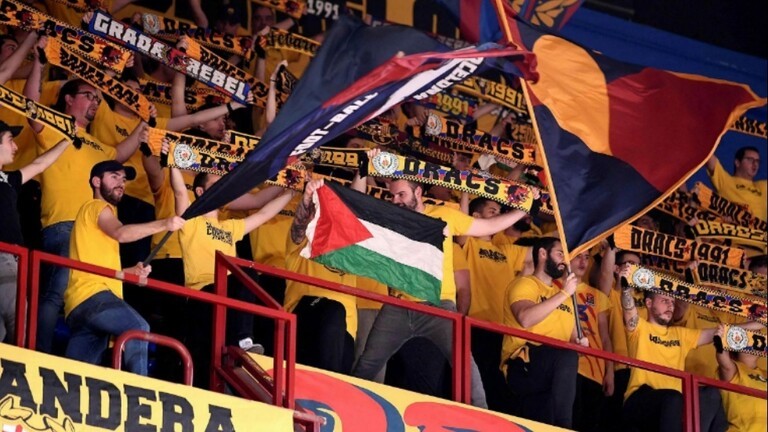 شهدت مباراة جمعت بين فريقي برشلونة ومكابي تل أبيب الإسرائيلي على ملعب "بالاو بلوغرانا" ضمن الجولة الـ33 من الدوري الأوروبي لكرة السلة، هتافات مناصرة لفلسطين.