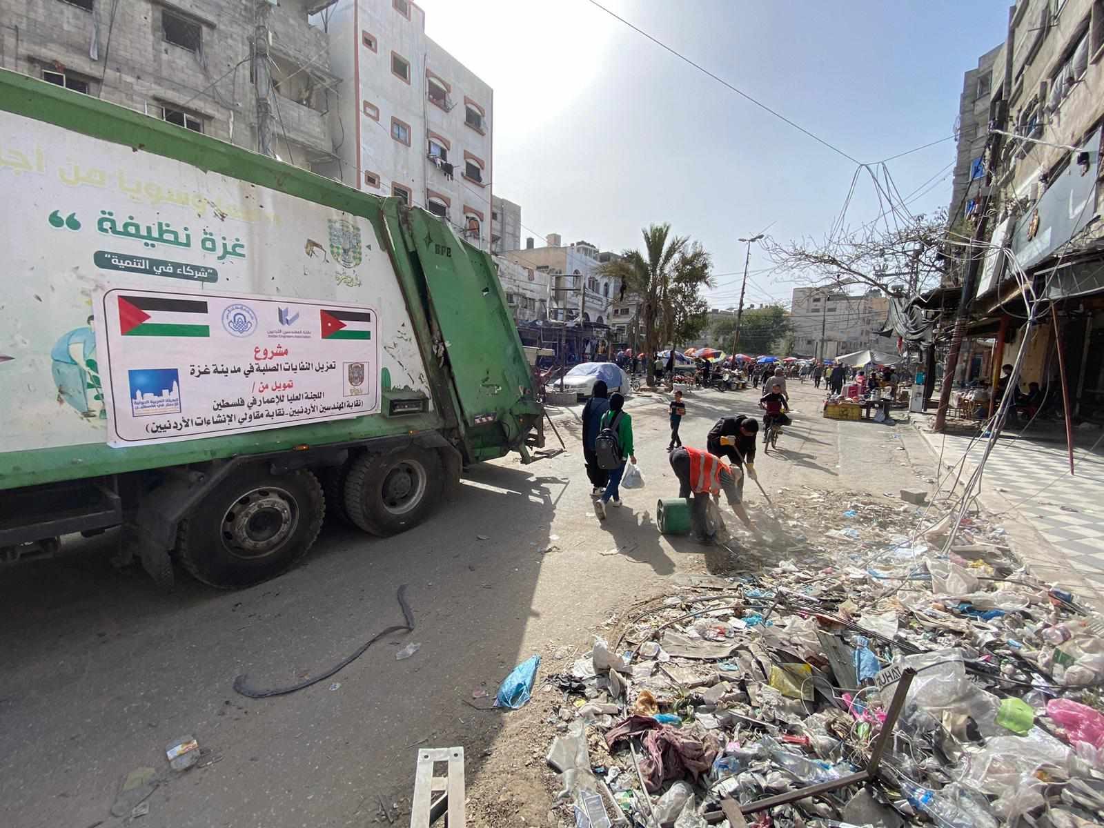 باشرت طواقم الهيئة العربية الدولية للإعمار في فلسطين والعاملة في محافظة غزة وشمال غزة على تنفيذ مشروع تجميع وترحيل النفايات الصلبة المتراكمة في شوارع وطرقات مدينة غزة وترحيلها للمكب المؤقت في منطقة سوق فراس (سابقاً) بالتنسيق مع بلدية غزة.