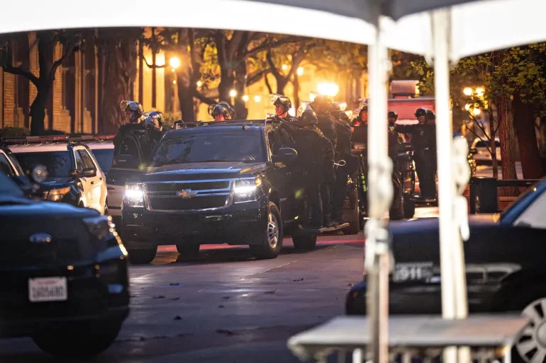 وكانت مقاطع مصورة، تداولتها مواقع التواصل الاجتماعي والتقطها شهود عيان ووسائل إعلام محلية الأحد، أظهرت ضباطا من شرطة لوس أنجلوس يرتدون معدات مكافحة الشغب ويتجمعون بأعداد كبيرة في محيط الحرم الجامعي.