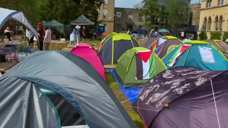 وفي جامعة "كامبردج" يواصل الطلبة اعتصامهم المفتوح، تضامنا مع غزة، على وقع ضغوط متزايدة على إدارة الجامعة للتفاوض معهم.