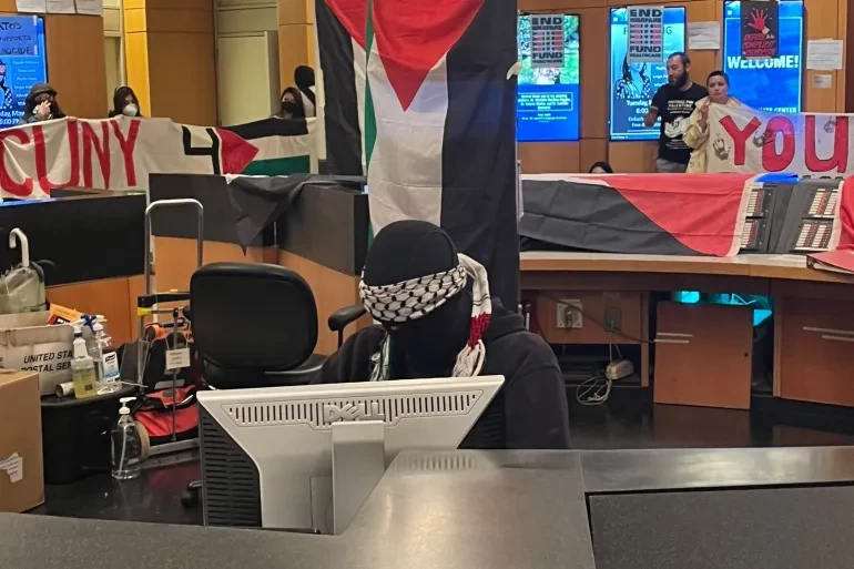 وسيطر طلاب من جامعة "كوني بمدينة نيويورك" على مكتبة في أحد المباني التابعة للجامعة، وأطلقوا عليها اسم "مكتبة جامعة الأقصى" أسوة بأقدم جامعة عامة في غزة، وفق بيان لهم.