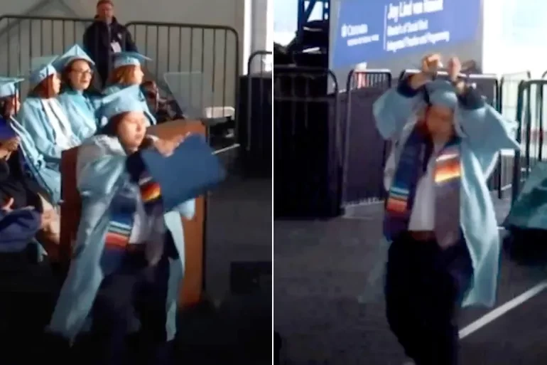 فاجأت طالبة في كلية الخدمة الاجتماعية بجامعة كولومبيا الحضور بتمزيق شهادة تخرجها، احتجاجا على تواطؤ جامعتها مع إسرائيل في الإبادة الجماعية بقطاع غزة.