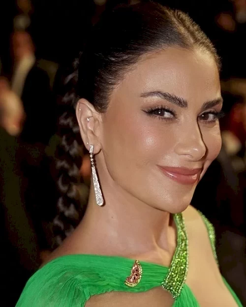 وظهرت النجمة الأردنية مرتدية فستانًا أنيقا أخضر اللون للمصمم اللبناني جورج حبيق، حرصت من خلاله على دعم القضية الفلسطينية، بوضع (بروش)  على شكل بطيخة زينت به فستانها فضلاً عن اختيارها لهذا اللون لإطلالتها.