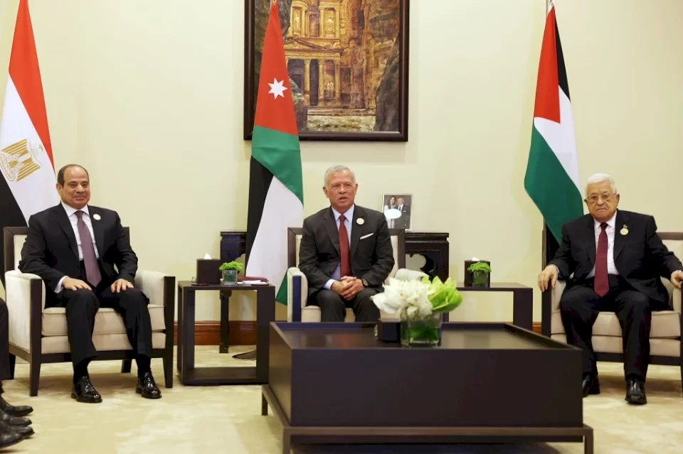 عقد الرئيس الفلسطيني محمود عباس، والعاهل الأردني الملك عبد الله الثاني، ورئيس جمهورية مصر العربية عبد الفتاح السيسي، اليوم الثلاثاء، قمة ثلاثية في مركز الملك الحسين بن طلال للمؤتمرات بمنطقة البحر الميت، على هامش أعمال "مؤتمر الاستجابة الإنسانية الطارئة لغزة"، بحضور الوفود الفلسطينية والمصرية والأردنية المشاركة في المؤتمر.