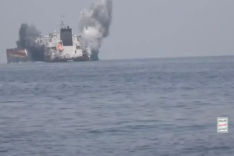 وكانت السفينة التجارية "إم في توتور"، التي ترفع علم ليبيريا وتملكها وتشغلها شركة يونانية، قد أصيبت، الأربعاء الماضي، بأضرار جسيمة إثر هجوم بزورق مسيّر وصواريخ تبناه الحوثيون، ما أدى إلى مقتل بحار فلبيني، حسب واشنطن.