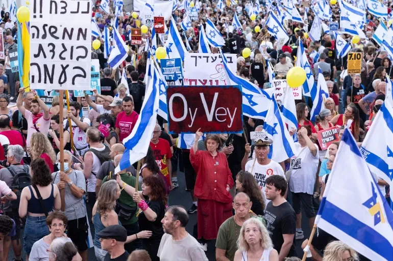 كما شارك عشرات الآلاف من الإسرائيليين في مظاهرات انطلقت في مدنٍ ومفترقاتِ طرق داخل إسرائيل أبرزها تل أبيب وحيفا وقيساريا للمطالبة بإبرام صفقة تبادل وإعادة الأسرى المحتجزين في قطاع غزة.
