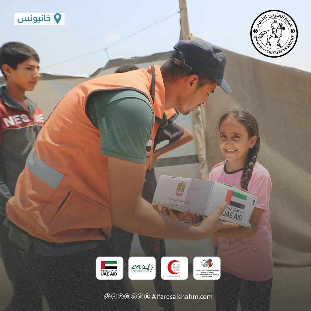 وزعت عملية الفارس الشهم "3" الذراع الإنساني لدولة الإمارات العربية المتحدة، مساعدات عاجلة وطرود تمور وجالونات مياه صالحة للشرب على العائلات الفلسطينية النازحة في مخيمات الإيواء بمدينة خانيونس، في ظل الأوضاع الصعبة التي تشهدها المدينة وتدمير البنية التحتية، مما أدى إلى نقص حاد في المياه الصالحة للشرب.