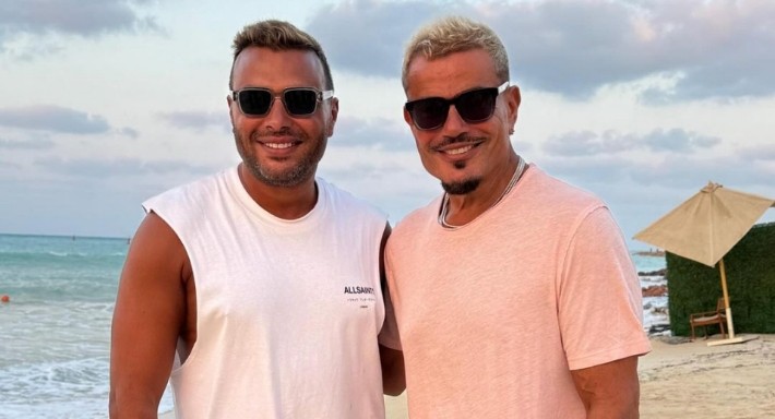 نشر النجم رامي صبري صورة جديدة تجمعه مع النجم عمرو دياب في الساحل الشمالي.
