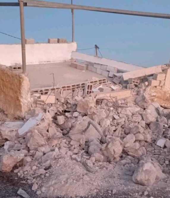 وأوضح أن جرافات الاحتلال هدمت غرفة سكنية زراعية يملكها، مكونة من طبقتين، الأولى عبارة عن خزان مياه مع مستودع، والثانية غرفة ومرافقها على مساحة 65 مترا مربعا، مبنية من الحجر.