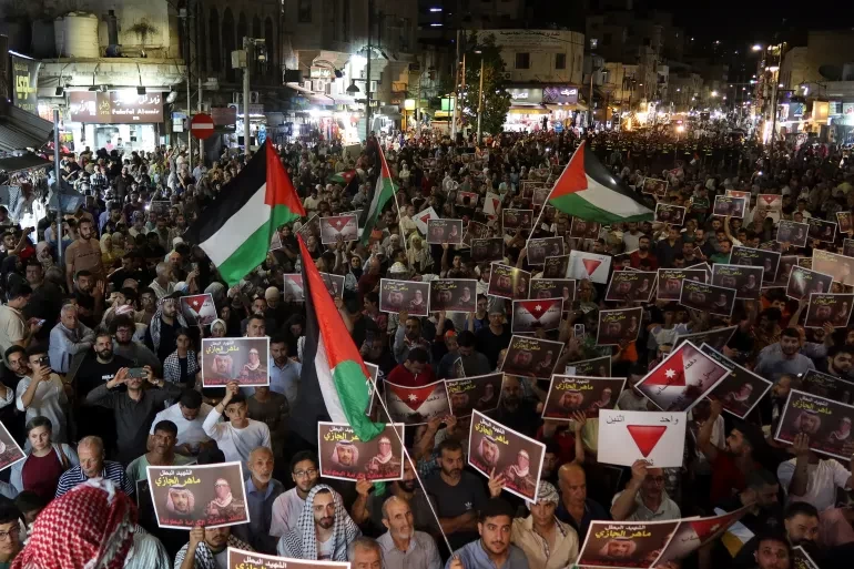 شهدت العاصمة الأردنية عمان مظاهرة للمطالبة باستعادة جثمان ماهر الجازي الحويطات، منفذ عملية جسر الملك حسين، التي قتل فيها 3 إسرائيليين.