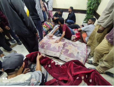 الشهداء تحت الانقاض لم يتم انتشالهم بسبب توقف عمل الدفاع المدني والاسعافات بشمال غزة و لا يستطيع احد الوصول للمكان.