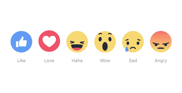 و سيكون أمام المستخدمين بالإضافة إلى زر الإعجاب المعروف اختيار مكون من خمسة أزرار أخرى للتعبير عن ردود الفعل و هي: "Love" و "Haha" و " Wow" و "Sad" و "Angry" فيما تم سحب زر"Yay" المعبر عن الرضا في النسخة النهائية لهذه الميزة.