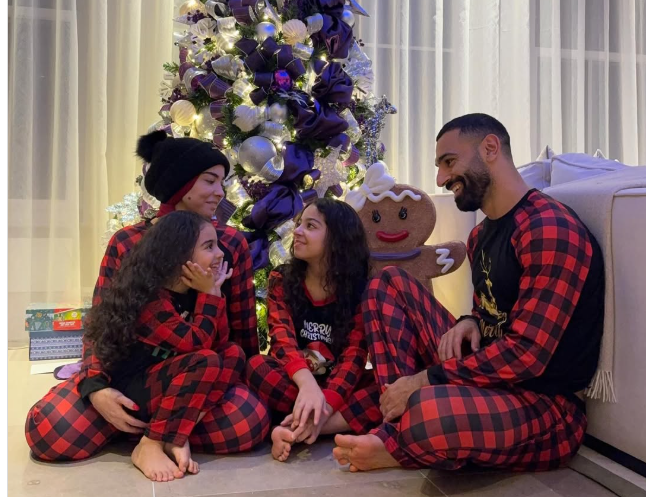 وظهر صلاح برفقة زوجته ماغي وابنتيه مكة وكيان، مرتدين ملابس موحدة على طريقة النجم البرتغالي كريستيانو رونالدو أمام شجرة الكريسماس، مما أثار موجة من التعليقات على منصات التواصل الاجتماعي.