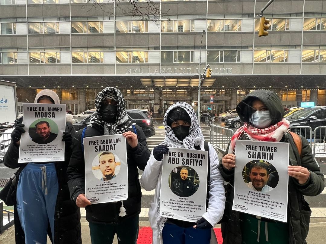 شارك العشرات، في وقفة بمدينة نيويورك، للمطالبة بإطلاق سراح الأطباء والعاملين في القطاع الصحي الذين اعتقلوا خلال عدوان الاحتلال الإسرائيلي المتواصل على قطاع غزّة.