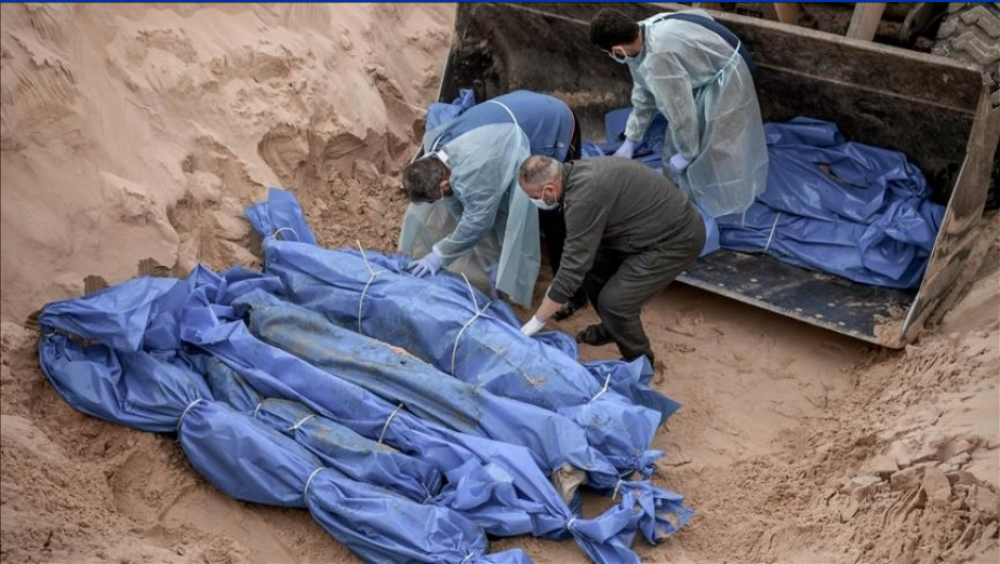 انتشلت طواقم الدفاع المدني بغزة يوم الثلاثاء جثامين 19 شهيدًا من مقبرة عشوائية.