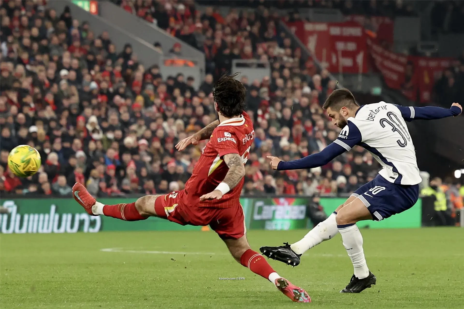 وقابل سوبوسلاي عرضية من جاكبو داخل منطقة الجزاء، بضربة رأسية استقرت بين يدي حارس توتنهام في منتصب المرمى، قبل أن يقابل نونيز عرضية برادلي بلمسة مباشرة في الشباك الخارجية.
