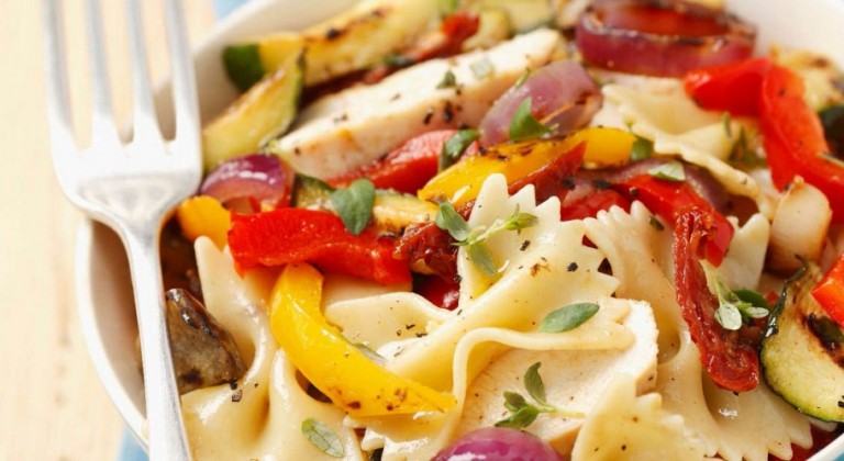 نقدم لك وصفة سلطة الباستا بالخضار والدجاج المشوي.