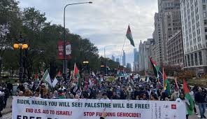 وتأتي هذه المسيرة ضمن فعاليات احتجاجية متواصلة على امتداد الولايات المتحدة للوقوف الى جانب الشعب الفلسطيني.