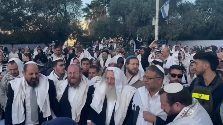 "الأقصى مستباح".. هكذا استهلت فاطمة التريكي تقريرها المصور، وهي تنقل مشاهد صادمة لم يسبق لها مثيل في تاريخ المسجد المبارك، حيث دخل المستوطنون بالآلاف، في جماعات وفرادى، يرقصون ويغنون ويؤدون شعائر تلمودية في استعراض قوة متصاعد.