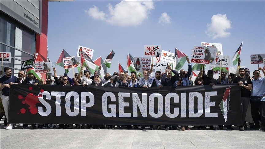ندد 200 من رؤساء نقابات من 41 دولة في تجمع احتجاجي أمام ممثلية الأمم المتحدة في تركيا بأنقرة، اليوم الإثنين، على هامش "المؤتمر الدولي بشأن العمل والرقمنة والعدالة الاجتماعية"، بالإبادة الجماعية التي ترتكبها إسرائيل في غزة.