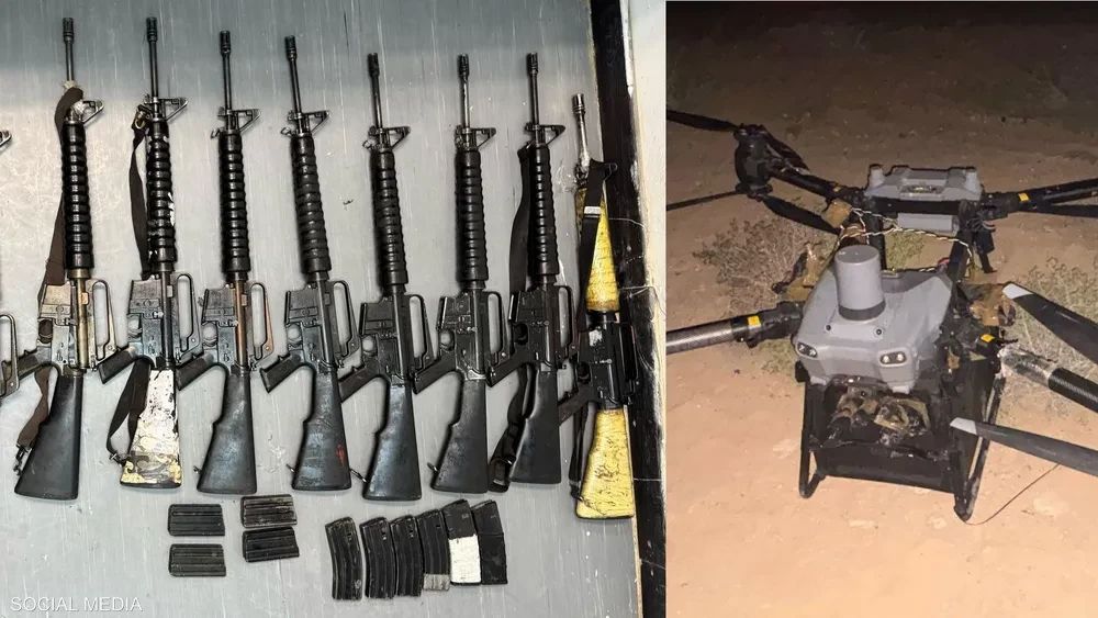 وتابع: "تمكن مقاتلو الجيش الإسرائيلي الذين وصلوا إلى المكان من العثور على طائرة مسيرة كانت تحمل عشرة أسلحة من نوع (إم 16) وذخيرة".