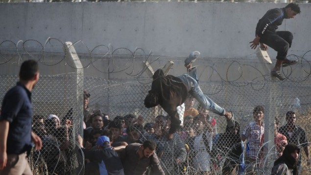 وأطلقت الشرطة المقدونية الإثنين قنابل غاز لتفريق مئات المهاجرين الذين اقتحموا الحدود من الجانب اليوناني ما أسفر عن تدمير بوابة حديدية.