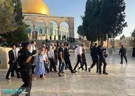 وأفاد شهود عيان، بأن عشرات المستعمرين اقتحموا المسجد الأقصى على شكل مجموعات، ونفذوا جولات استفزازية في باحاته، وأدوا طقوسا تلمودية، بحماية قوات الاحتلال.