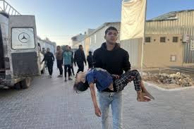 وارتقى ثلاثة مواطنين من عائلة أبو جراد، بينهم طفل وسيدة، في قصف الاحتلال خيمة تؤوي نازحين في منطقة أصداء شمال مدينة خان يونس.