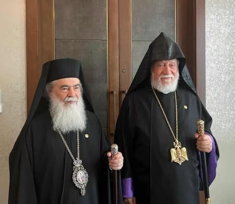 على هامش المؤتمر الثامن لقادة الأديان العالمية والتقليدية، المنعقد برعاية فخامة الرئيس قاسم جومارت توكاييف، رئيس جمهورية كازاخستان، التقى غبطة البطريرك ثيوفيلوس الثالث، بطريرك القدس وسائر أعمال فلسطين والأردن، بقداسة الكاثوليكوس آرام الأول، كاثوليكوس بيت كيليكيا الكبير، في لقاء أخوي جمعهما في العاصمة أستانا. وخلال اللقاء، أعرب الجانبان عن بالغ قلقهما إزاء المأساة الإنسانية التي يشهدها قطاع غزة، ورفعا صوتهما المشترك تضامناً مع الأبرياء ودعوةً إلى أن يحل سلام المسيح على القلوب جميعاً. وتطرق البطريرك والكاثوليكوس إلى الدور التاريخي والرسالة الدائمة للكنيسة في حماية الوجود المسيحي في الأرض المقدسة، ولا سيما في مدينة القدس، مؤكدَين أن هذا الوجود المتجذر في تاريخ الخلاص يشكّل شهادة حيّة للإنجيل، وأن من واجب الكنيسة دعم صمود أبنائها والحفاظ على رسالتها في الأرض التي قدسها الله. وفي ختام اللقاء، جدّد القائدان الكنسيان عزمهما على تعزيز التعاون الثنائي وترسيخ وحدة الكنيسة الأرثوذكسية، لتبقى منارةً للإيمان والرجاء والسلام في عالم يزداد انقساماً.