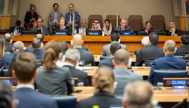 عقد التحالف الدولي لتنفيذ حل الدولتين اجتماعا وزاريا برئاسة المملكة العربية السعودية وبالشراكة مع الاتحاد الاوروبي والنرويج، في نيويورك، بعنوان "تحويل الالتزامات إلى أفعال لا رجعة فيه"، على هامش أعمال الجمعية العامة للأمم المتحدة في دورتها الثامنين.