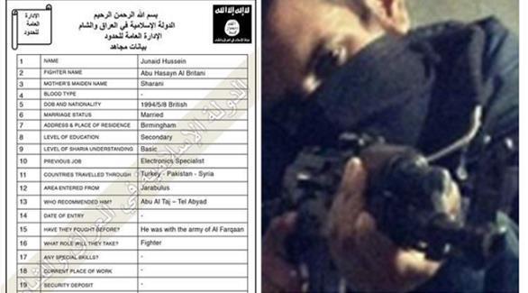 وحسب صور بعض هذه الاستمارات التي يشتمل كل منها على 23 خانة، تُبين على سبيل المثال اسم المنضم إلى التنظيم، واسم عائلته، واسمه الحركي، واسم أمه، وفصيلة دمه، وتاريخ ولادته، وجنسيته، وحالته الاجتماعية، وعنوانه، وهاتفه، ومكان إقامته، وعمله السابق، ومهاراته، وتحصيله الدراسي، ومدى إلمامه بالشريعة الإسلامية، وما إذا كانت لديه خبرات قتالية، والدول التي عبرها للوصول، إلى سوريا، وتاريخ دخوله، ومن أوصى به.