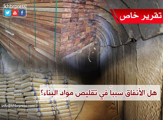 وقال المحلل السياسي عمر جعارة لوكالة "خبر"، إن الأنفاق سبباً في قلة مواد البناء الداخلة إلى القطاع من قبل إسرائيل، بالإضافة إلى ارتفاع أسعارها في الضفة الغربية.