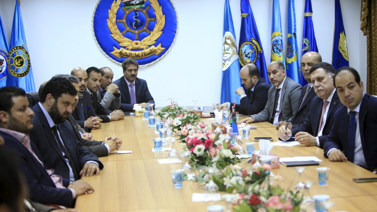 وكانت حكومة الوفاق التي وصل سبعة من أعضائها التسعة الأربعاء الماضي إلى قاعدة "أبو ستة" البحرية في طرابلس، قد بدأت اجتماعاتها أمس مع شخصيات هامة مثل محافظ البنك المركزي ومديري المصارف وعمداء بلديات طرابلس والمؤسسة الوطنية للسلع التموينية، لمناقشة أوضاع المعيشة في البلاد.