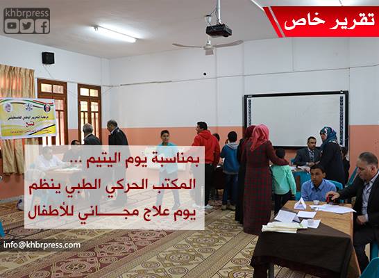 وفيما يخص ذوي الأيتام، فشملت الفحوصات لديهم من عظام وصدرية وجلدية وأسنان وغيرها الكثير، وأكد المكتب الحركي على أنه تم توزيع الدواء مجاناً على المرضى والأطفال الأيتام.