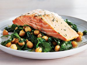 - ضعي خليط الحمص والسبانخ بجانب السمك وقدميها ساخنة