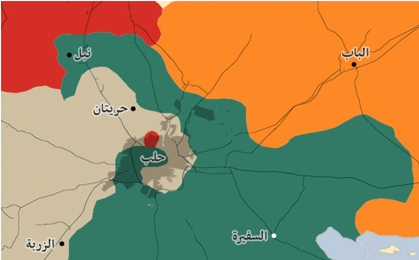 وتشهد مدينة حلب تصاعدا في أعمال العنف إذ تشن القوات الحكومية غارات على مواقع تحت سيطرة المسلحين المعارضين ويقصف مسلحون معارضون مواقع تقع تحت سيطرة القوات الحكومية.