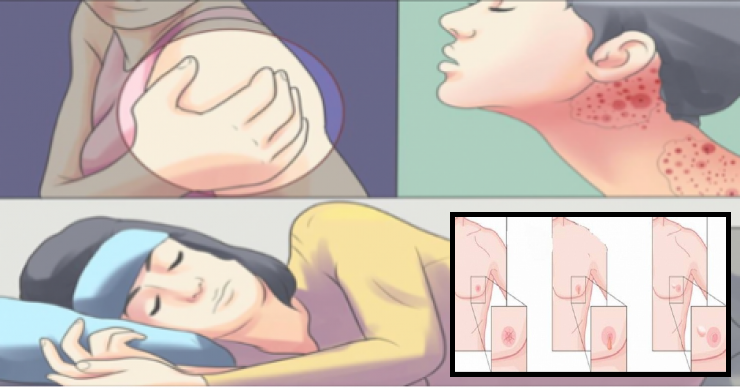 – كتلة أو تمسك في أي مكان من الجسم وخاصة الثدي عند المرأة.