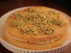 8. وزعي كوب من السمن المذاب فوق كل قرص من الكنافة.