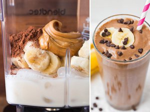 إليك طريقة تحضير مخفوق الشوكولاته مع زبدة الفول السوداني والموز: