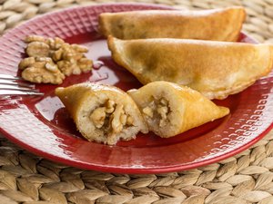 - احشي أقراص القطايف باللوز والفستق أو الجوز  أو الجبنة العكاوي أو القشطة "بحسب الرغبة".