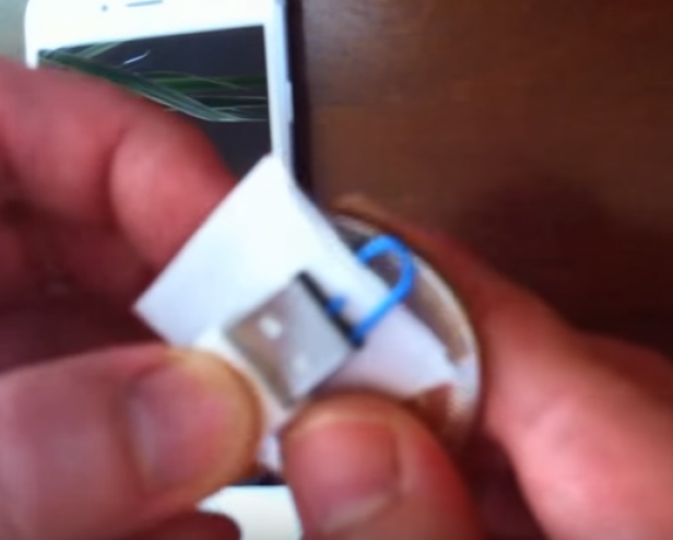 - من ثم ضع قطعة الورق الصغيرة بين المشبك والـ USB.